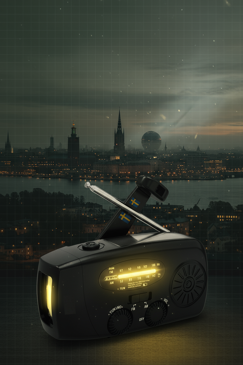 VEVRADIO - PREPARE Svart Vevradio med allt du behöver: Ficklampa, USB-uttag och AM/FM Radio. Drivs av solceller och vev.
